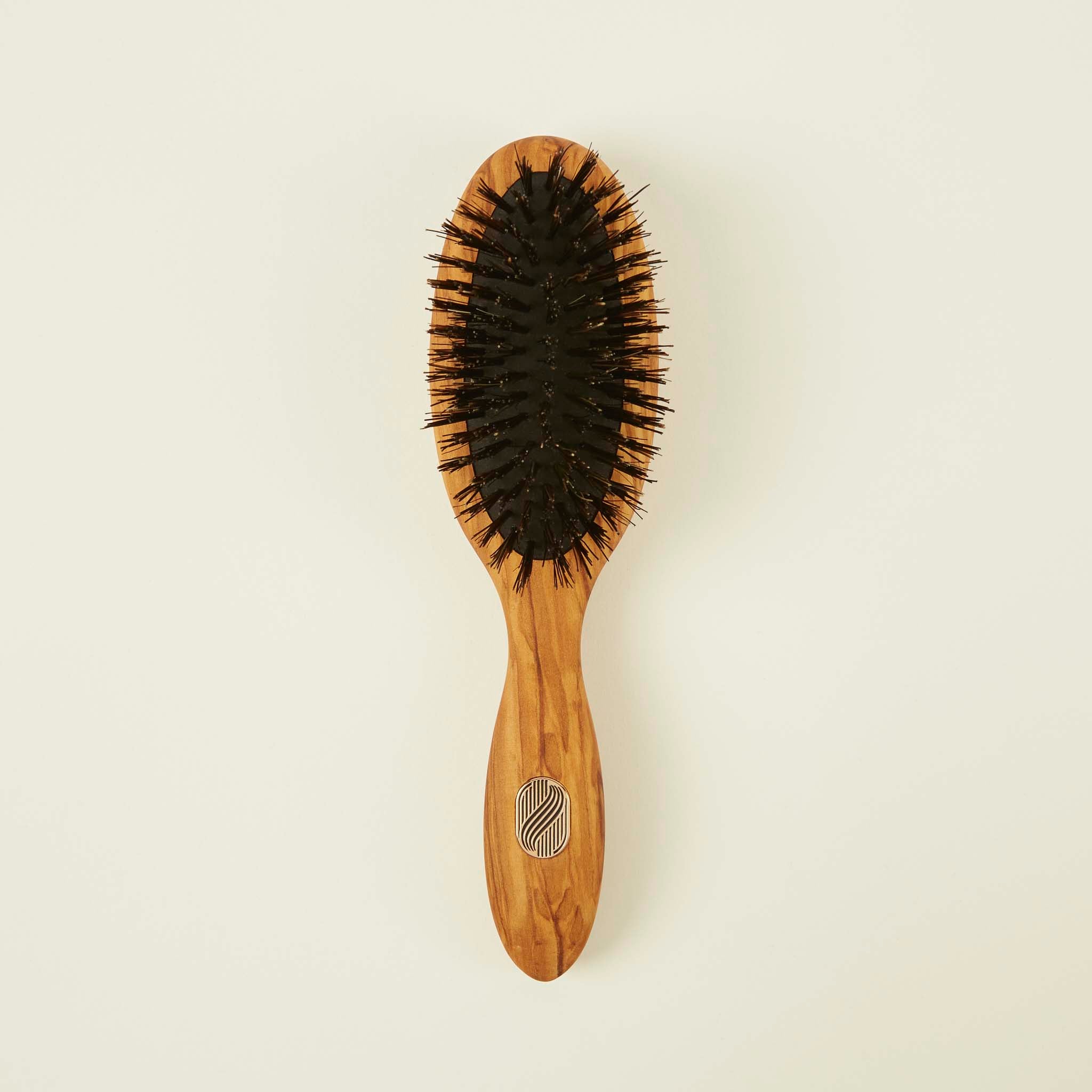 En période estivale, mais aussi tout au long de l'année, on se brosse les cheveux deux fois par jour avec une brosse en poils de sanglier. Le but ? Discipliner, lisser mais surtout nourrir la fibre capillaire naturellement. C’est le geste de soin ultime pour de beaux cheveux en toute saison. Et c’est d’autant plus le cas en été, lorsque le soleil, la chaleur, le sel, le chlore et la transpiration (la liste est longue) fragilisent votre chevelure ! La brosse en poils de sanglier vient débarrasser le cuir chevelu des impuretés accumulées tout au long de la journée, tout en répartissant le sébum des racines aux pointes.